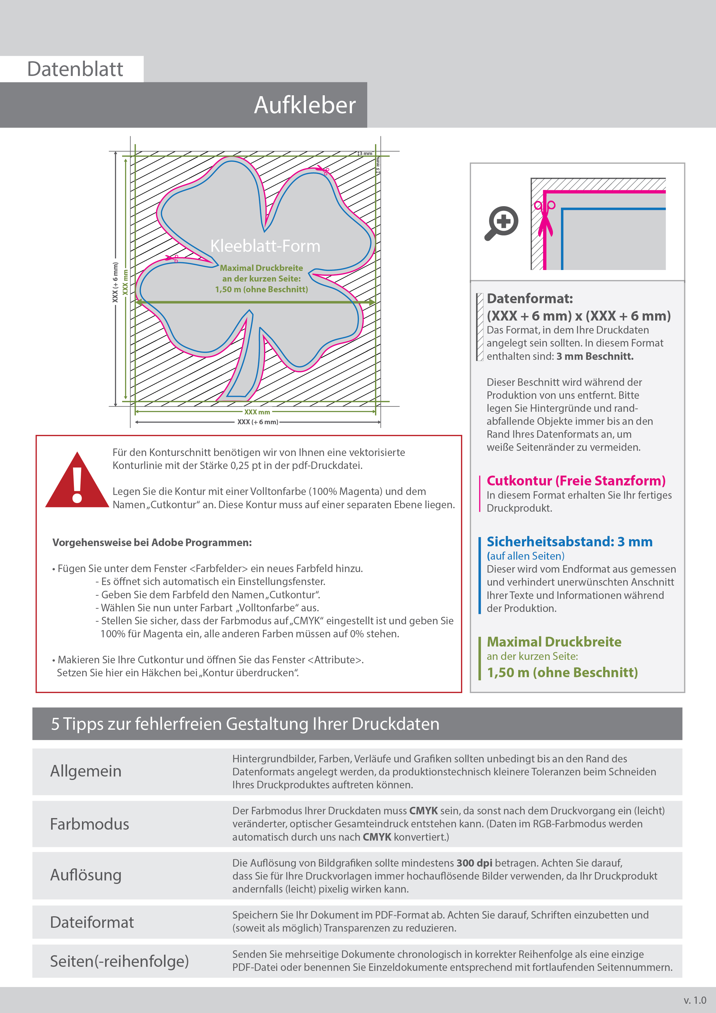 Hinterglasaufkleber 4/0 farbig bedruckt in Kleeblatt-Form konturgeschnitten